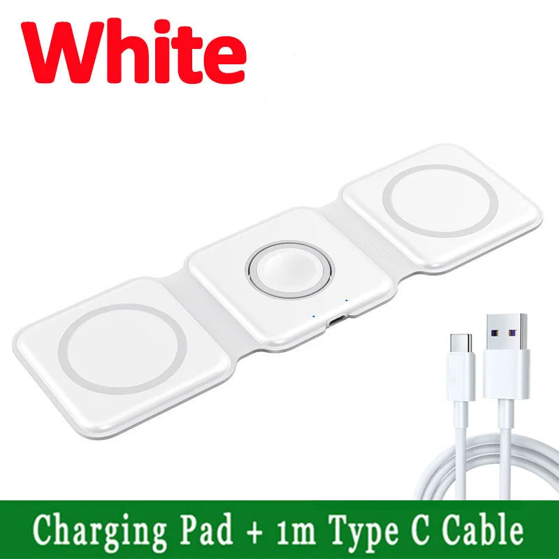 3 em 1 Carregador magnético sem fio Pad Stand dobrável para iPhone 15 14 13 12 11 Apple Watch AirPods 15W Estação de carregamento rápido