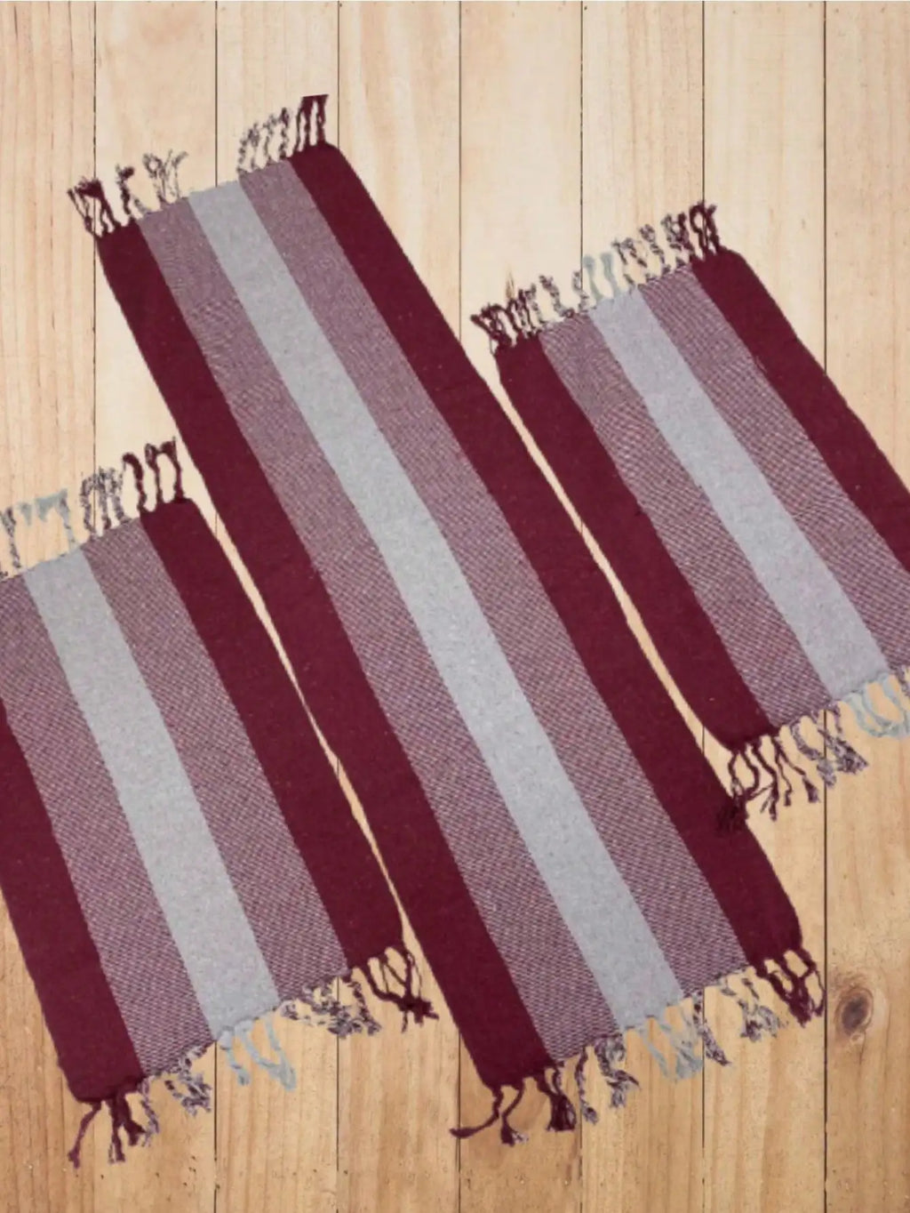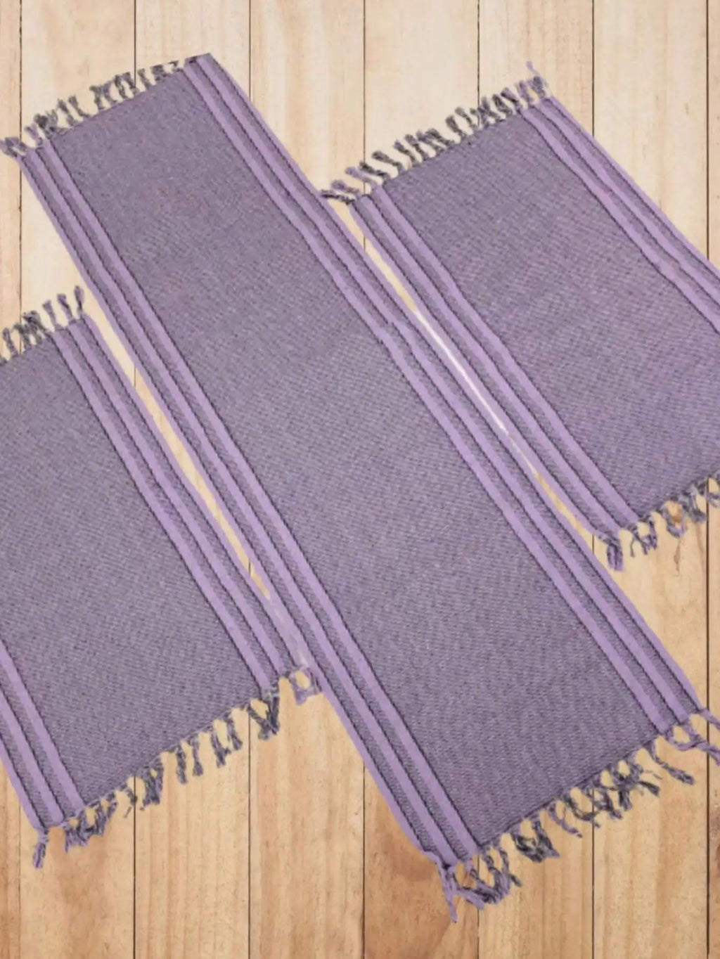 JOGO DE PASSADEIRA E TAPETE TEAR (3 PEÇAS) Um produto simples com um toque contemporâneo para sua casa, decore seus ambientes com lindas cores que combinam com seu estilo. É um produto de uso versátil e fácil manuseio. CARACTERÍSTICAS: Feito em tear Feito em fio de algodão Fácil de limpar 1 Esteira de carpete 1,60 m comprimento X 0,45 cm largura 2 Porta de carpete 0,85 cm comprimento X 0,45 cm largura