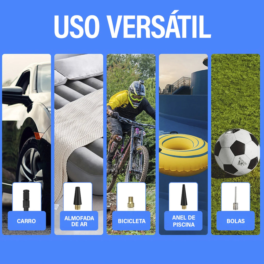 Suporta quatro modos de inflação e uma variedade de unidades de pressão (PSI, BAR, KPA, kg/cm2) podem ser trocadas, o que pode inflar pneus e bolas de carro/motocicleta/bicicleta.